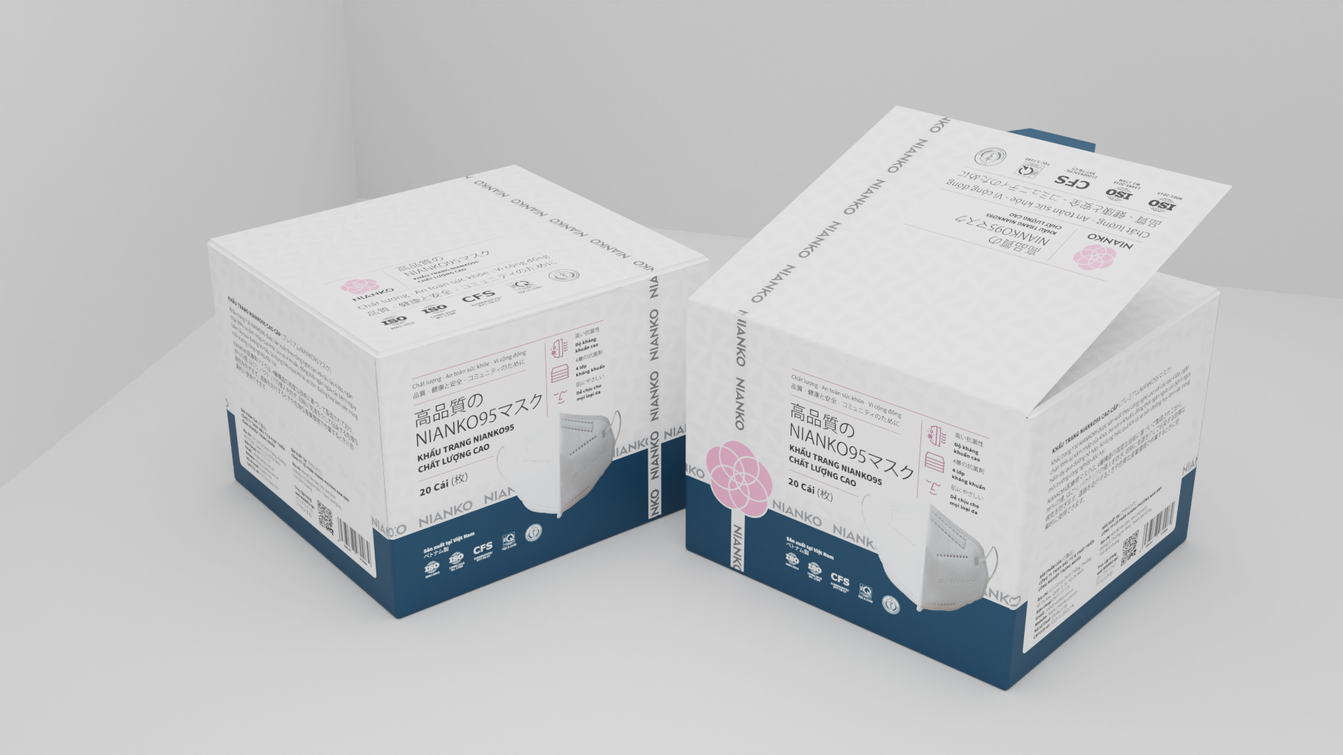 Bao gói: Bên trong là bao giấy kiếng. Bên ngoài là hộp giấy. Hộp chứa 20 bao giấy kiếng, mỗi bao chứa 01 cái khẩu trang NIANKO95.