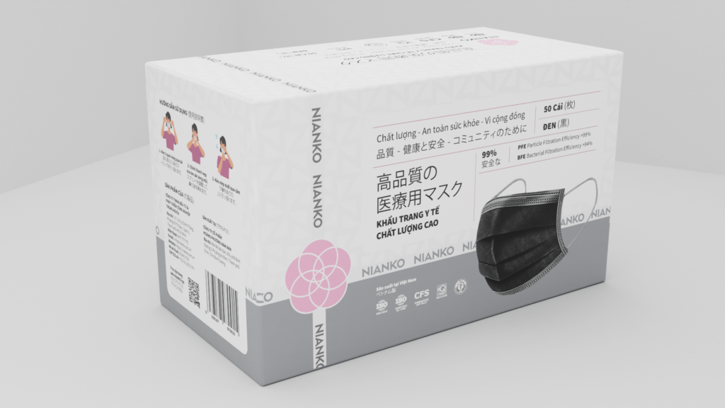 Khẩu trang NIANKO: khẩu trang kháng khuẩn 4 lớp (Màu đen):
